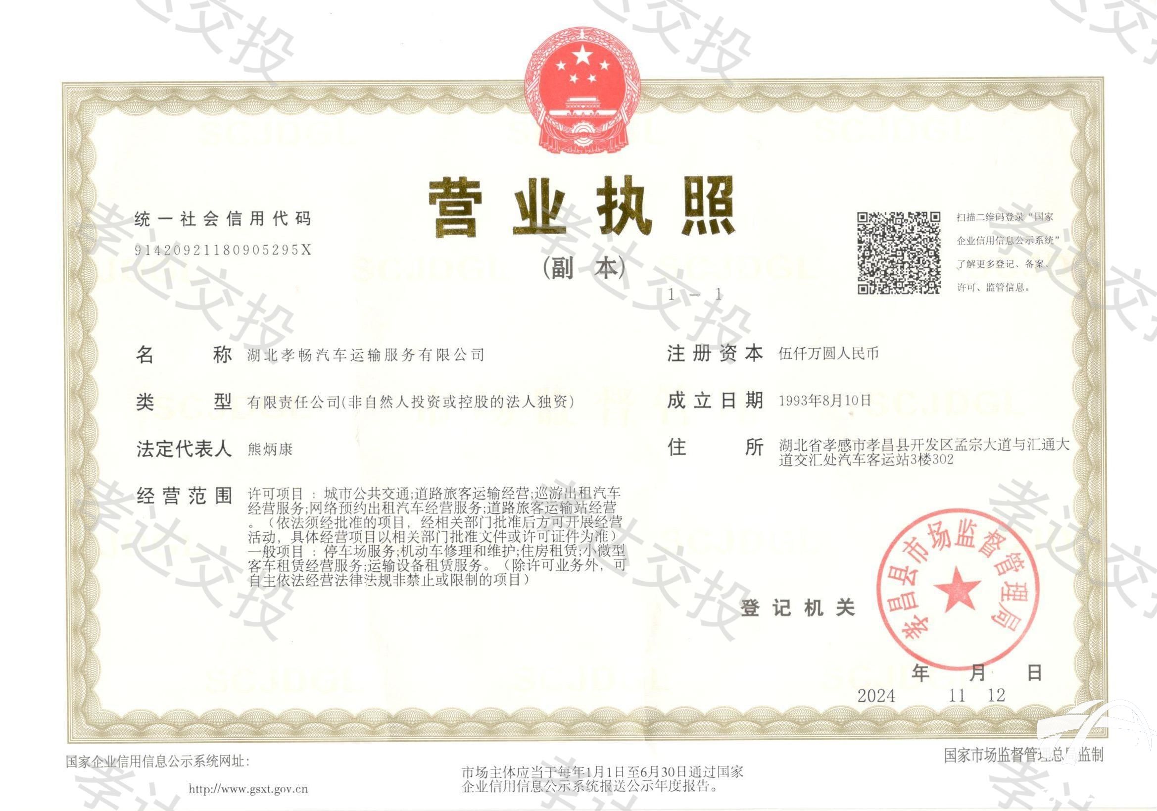 11月12日,孝达交投旗下汽运公司正式完成改制,并更名为“湖北孝畅汽车运输服务有限公司”。