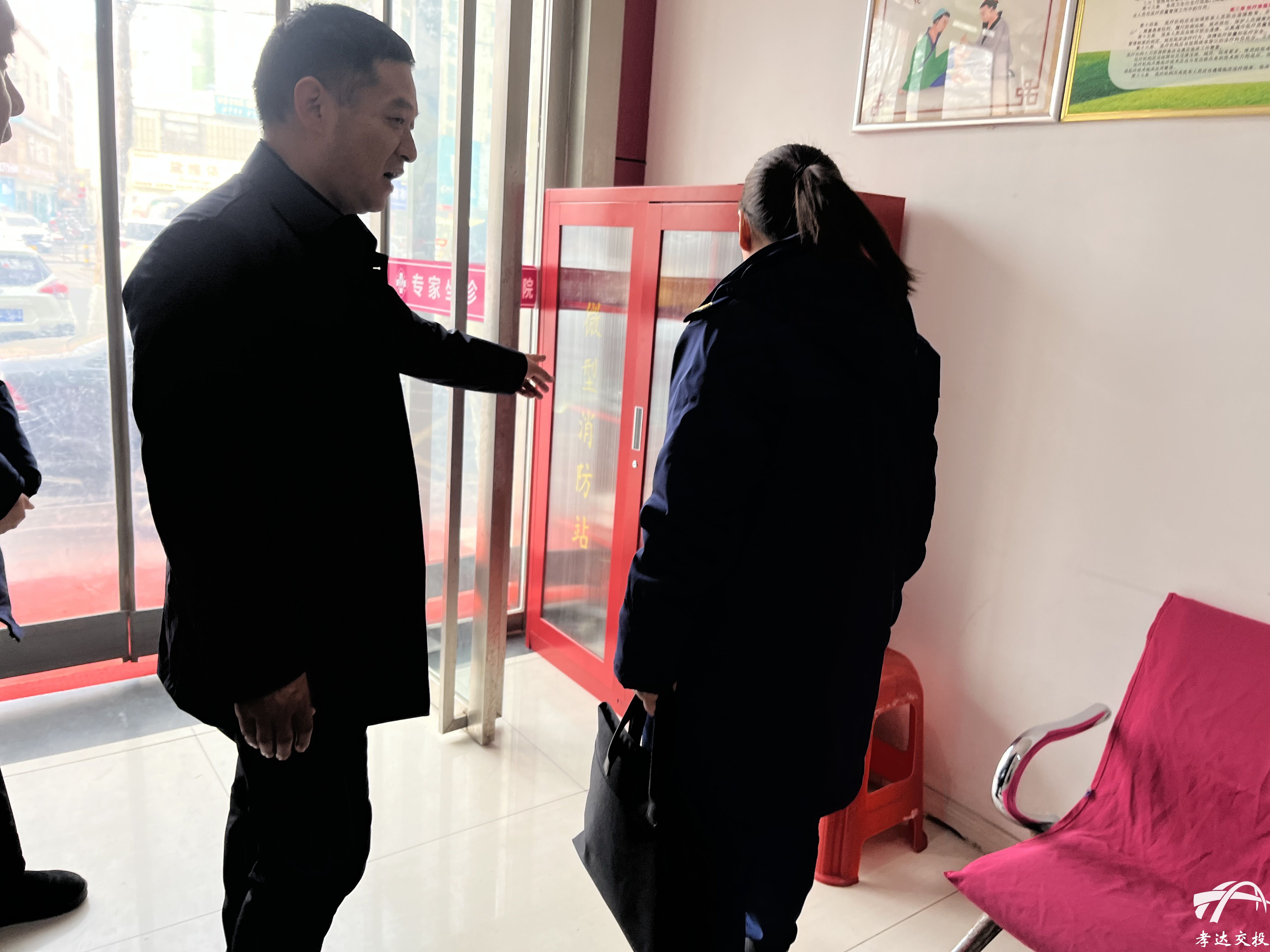 发布时间: 2025-01-24 10:34:56为做好年前消防安全工作,进一步强化各市场主体消防安全意识,保障人民群众生命财产安全,确保人民群众度过一个安定祥和的春节。1月22日上午,湖北孝达交通投资有限公司联合县消防部门对旗下经营性房产(新孝武超市、泰康医院)、客运站等人员密集场所开展消防安全联合大检查。