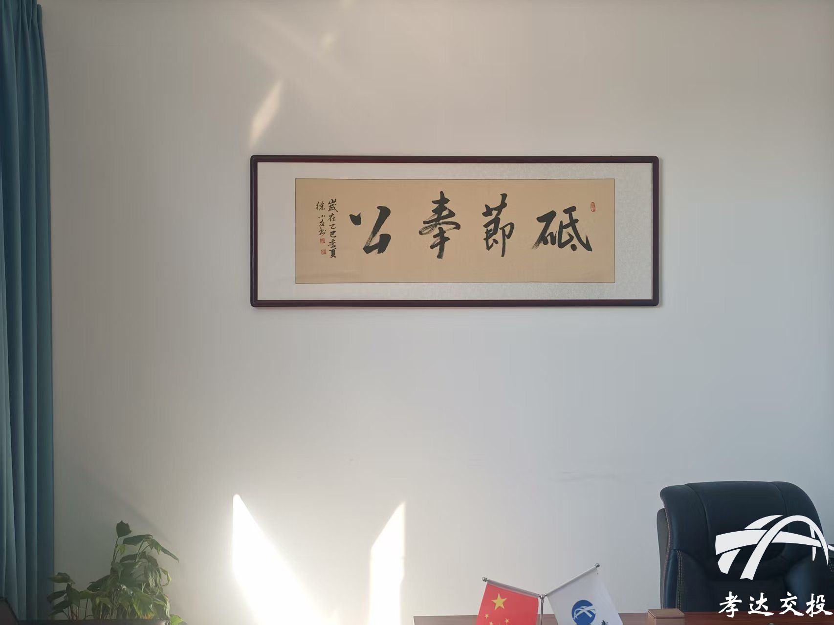 发布时间: 2025-08-21 16:51:37“诚信立业、担当为民”“脚踏实地,躬身力行”……走进孝达交投办公楼,清廉之风扑面而来,一幅幅图文并茂的党纪法规、廉洁警句、廉洁文化书法的标语映入眼帘。